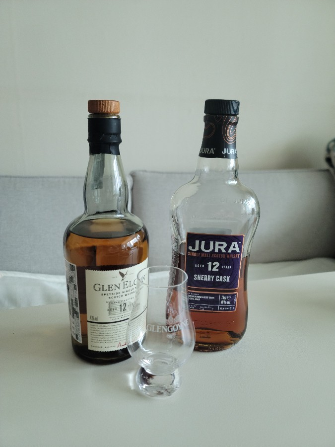 두 위스키 모두 정상 금액 대는 8만원 근처에서 형성되어 있습니다. 같은 싱글몰트 위스키지만 주라12년이 쉐리 캐스크인만큼 확실히 더 달짝지근한 맛이 느껴집니다. 반대로 글렌 엘긴 12년은 시트러스함이 더욱 배가됩니다. 비슷한 금액대의 두 위스키를 한 번에 시음하니 그 차이가 더욱 두드러집니다.